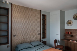 Après un travail complet de restructuration, ce deux pièces sans âme est devenu un lieu fonctionnel aux teintes douces et apaisantes.