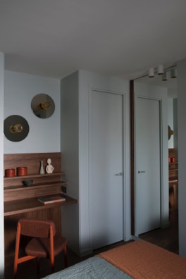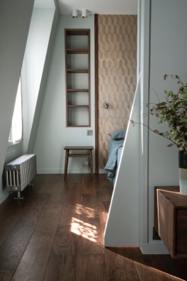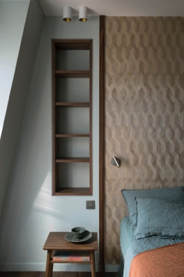 Après un travail complet de restructuration, ce deux pièces sans âme est devenu un lieu fonctionnel aux teintes douces et apaisantes.