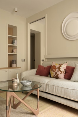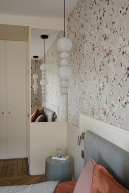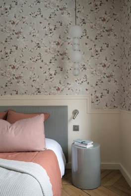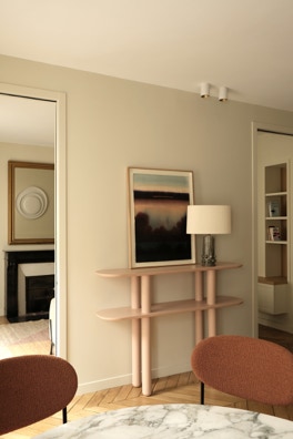 Sérénité et harmonie pour une ambiance doucement colorée entre beige grisé et rose poudré.