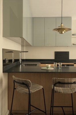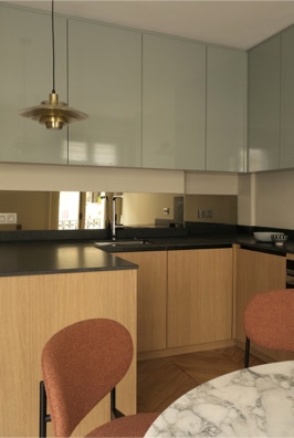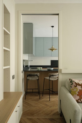 Création d'une cuisine épurée et fonctionnelle dans le salon.