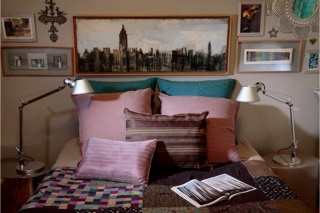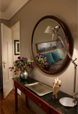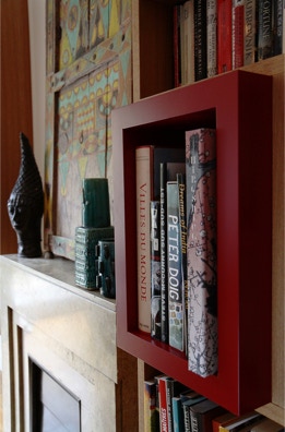 Un appartement familial qui mélange les codes et les choix apparemment éclectiques afin de former un ensemble chaleureux et convivial. Bohème et métissé, les associations de motifs et de matières  créent l’harmonie. Des éléments bibliothèques dessinés sur mesure, d’où surgissent des niches en laque encadrent la cheminée en pierre.