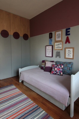 Dans les chambres d’ados aux couleurs joyeuses ont trouve de grands placards aux poignées inattendues.