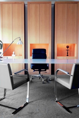 Ce cabinet d’avocat bénéficie d’une lumière et d’une vue magnifique. Après avoir réunit deux appartements pour former un duplex, il fallait faire cohabiter fonctionnalité et convivialité.